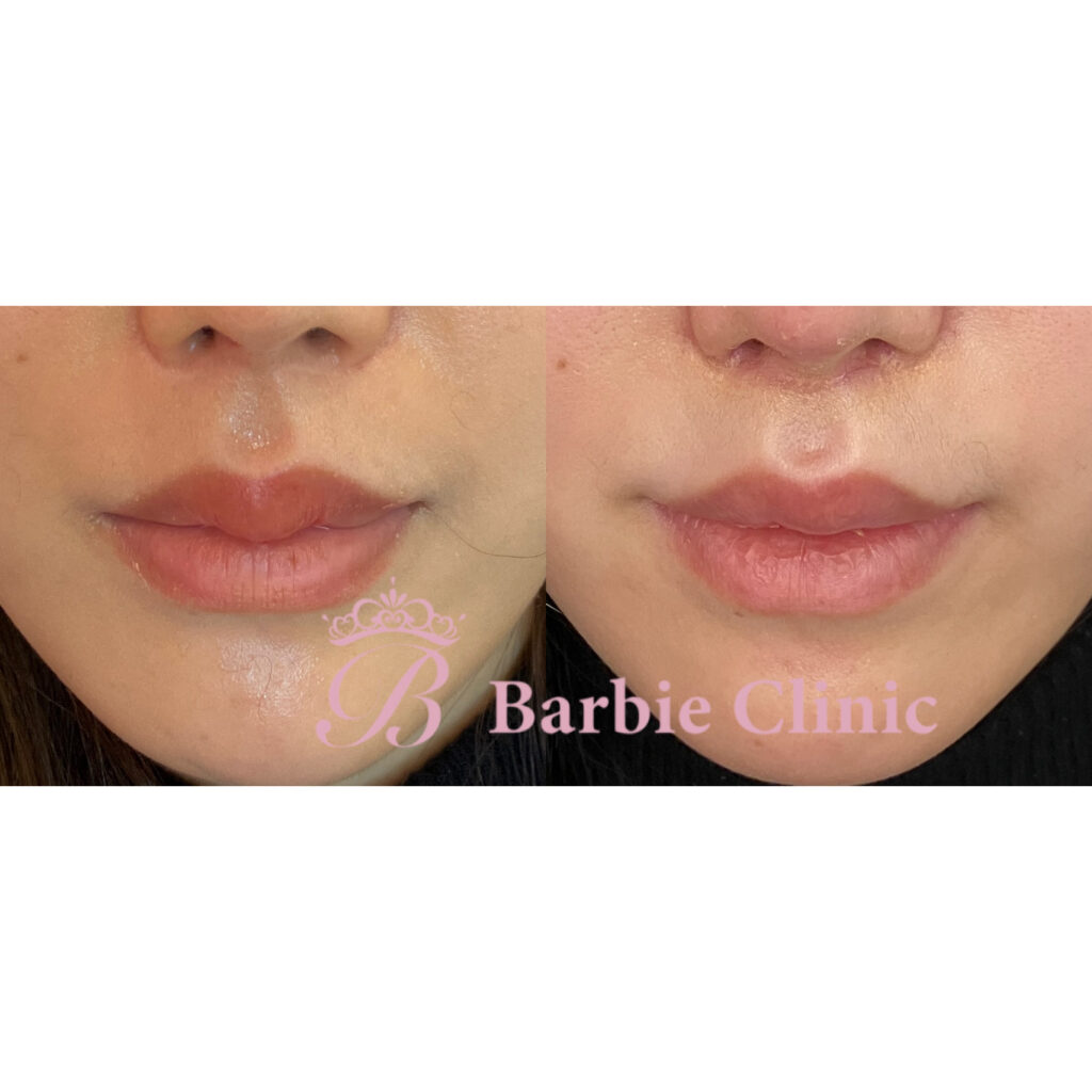 術前は上唇のM字、谷部分にヒアルロン酸が溜まっており、触ると硬くしこりになっていました。